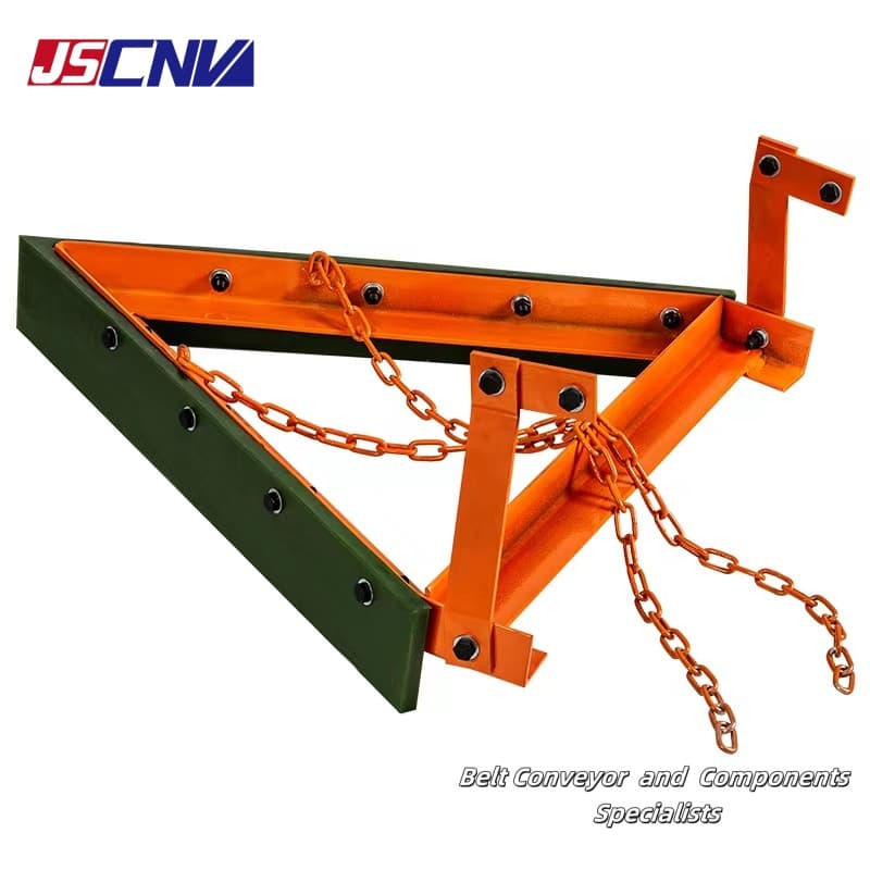V-Plow Belt Cleaner wani nau'in mai tsabtace bel ne na dawowa. Ana amfani dashi da yawa a gaban na'urar lanƙwasa ɗigon bel ɗin bel da gaban na'urar tayar da hankali mai nauyi. Yana da halaye na acid da alkali juriya, harshen wuta retardant da antistatic, high lalacewa juriya, kuma ba ya lalata bel. An yi ruwan wukake da polyurethane mai ƙarfi mai ƙarfi, ƙirar V-dimbin ƙira tana tabbatar da tsaftar bel, kuma ƙirar nauyi ta atomatik tana tabbatar da ramawa ta atomatik lokacin da ruwa ya ƙare.